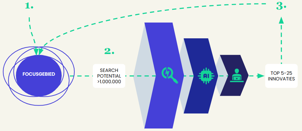 In de dynamische wereld van vandaag volgen (technologische) ontwikkelingen en nieuwe vindingen elkaar razendsnel op. De kansen voor jouw organisatie of team zijn eindeloos, maar de uitdaging is om continu up-to-date zijn en te weten wat relevant is. Via onze dienst ‘Innovation Scouting as a Service’ lossen wij dat probleem voor je op. Het hele jaar door zoeken en rangschikken wij de meest inspirerende innovaties, toepassingen en samenwerkingspartners, die aansluiten bij jouw behoeften!